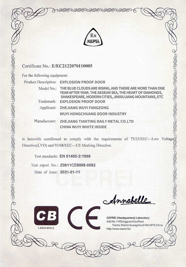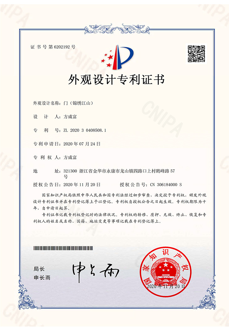 鴻創(chuàng)安全門 · 榮譽(yù)證書
