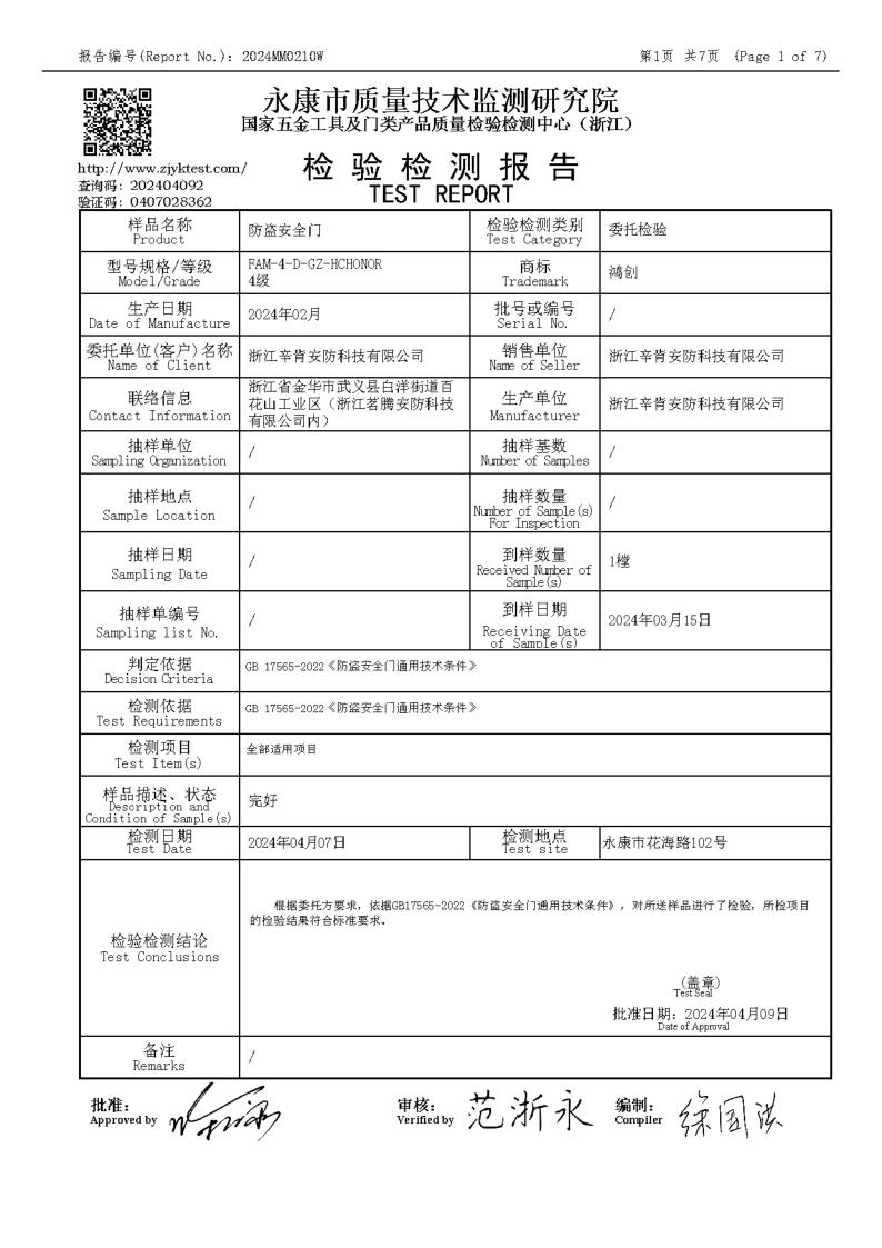 鴻創(chuàng)安全門-浙江辛肯安防科技有限公司 400-1782-882